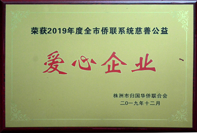 集團(tuán)公司榮獲“株洲市2019年度僑聯(lián)系統(tǒng)慈善公益愛心企業(yè)”稱號(hào)
